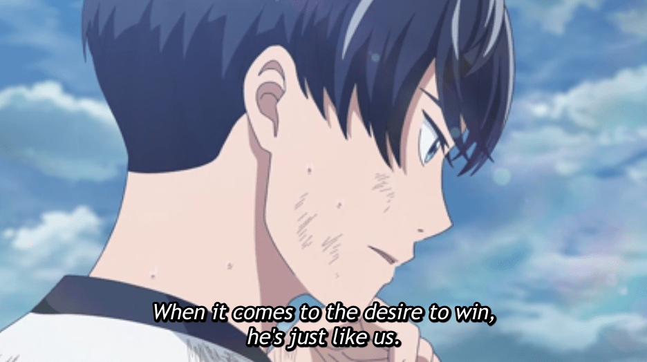 The show doesn’t have villains as such; the closest it gets to an antagonist is a footballer from a rival school (who sounds suspiciously like Dio Brando) who tries to convince Aoyama to transfer and join his team. Mostly it’s just fun high school and sports antics with cute characters, light-hearted humour and a positive message.