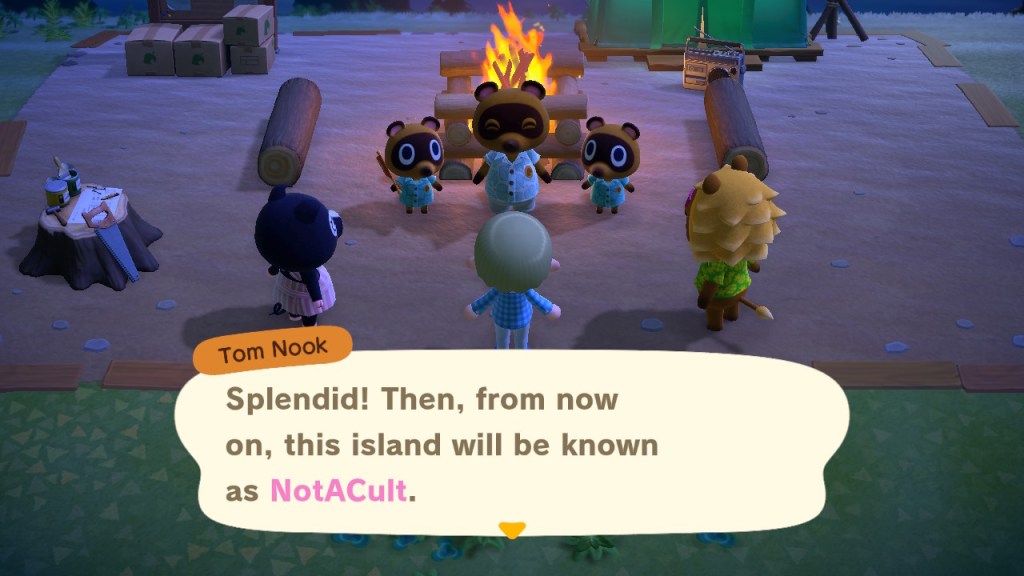 I made the suggestion ‘NotACult Island’. They went with it. Completely innocent. Totally legit. Nothing to worry about here, right? The others celebrated the naming with a totally non-cultish party, during which a lion with no trousers on played a tambourine while Tommy Nooka gazed into a ceremonial fire.